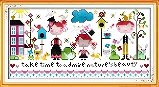 Baiyao 46x35cm Chalet Riverside DIY Kits De Broderie Au Point Compté, Motif Imprimé 14CT, Kit De Broderie Au Point De Croix Pour La Décoration Intérieure
