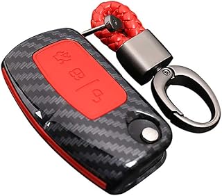 Happyit Coquille de Fibre de Carbone ABS + Silicone Clef de Voiture Couverture Cas Porte-clés pour Ford Focus Mondeo Edge Fiesta Kuga Mondeo MK4 Fusion Escort Ecosport (A ibre de Carbone + Rouge)