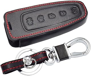 Happyit Cas de Couverture de Clé de Voiture en Cuir Porte-clés de Coiture pour Ford C-Max Edge Escape Explorer Flex Focus Lincoln MKS MKT MKX 5 Boutons Clé Intelligente