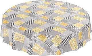 ANRO Nappe en Toile cirée - Motif Patchwork Moderne - Couleur : Jaune et Gris - Ronde - 140 cm - Bords découpés