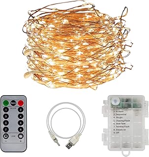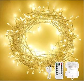 Othran Guirlande lumineuse 10 m 100 LED avec pile/USB, blanc chaud, avec télécommande et minuteur, étanche IP44, pour intérieur et extérieur, pour jardin, Noël