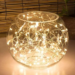 Guirlande lumineuse 100 LED à piles avec minuteur Blanc chaud 10 m Fil argenté pour chambre à coucher, intérieur, arbre de Noël, décoration de mariage
