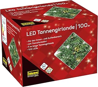 Idena 31814 Sapin Guirlande avec Lot de 100 LED Guirlande lumineuse Blanc chaud pour intérieur et extérieur,25 cm x 5 m (sans fil), plastique, vert