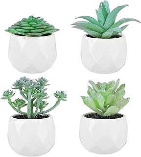 Sawpy 4 Pièces Plantes Succulentes Artificielles, Plante Artificielle avec Pots Plante Artificielle Table Maison Balcon Bureau Salon Tumblr Décoration Noël Halloween Thanksgiving Day Advent Gift