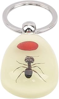JKLBNM Porte-clé Lumineux Insecte réel Glow-in-The-Dark Porte-clé en résine Vert scarabée Fait Main Porte-clé Unique pour Femme Homme,Fourmi aux Haricots Rouges