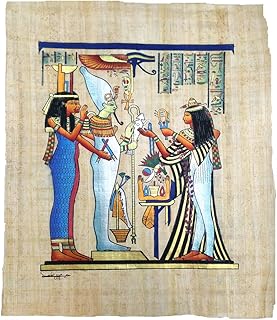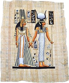 Papyrus Original fabriqué et Peint à la Main en Egypte DE 33 cm x 43 cm Environ, représente l'épouse de Néfertari de Ramsès II avec la déesse de l'amour Isis. B07HR1XGRQ