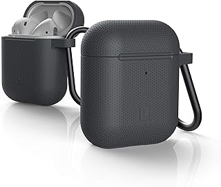 Urban Armor Gear Coque en silicone Airpods 2 (2019) / Apple Airpods 1 (2016) (Chargeur sans fil compatible 2ème génération, résistant aux chocs selon MIL STD 8105G, avec mousqueton) - noir