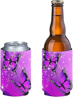 Aulaygo Lot de 2 pochettes pliables antidérapantes pour canettes de bière - Pour boissons ou bières - Pour fête d'anniversaire, pique-nique, sport - Motif papillon violet
