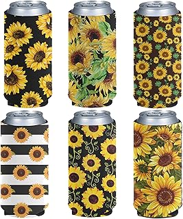 Aulaygo Lot de 6 manchons isolants pour canettes de 350 ml - Pour canettes de bière ou canettes de 350 ml - Pour fête, projet de bricolage, sport, match, tournesol, papillon