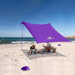 Forceatt Abri Solaire pour Tente de Plage,Tente de Plage Pop-up avec Protection UV UPF50+ et 2 Pièces Poteaux en Aluminium, Abri Extérieur pour la Plage, Camping ou Pique-Niques (2.1 Mx2.1 M).